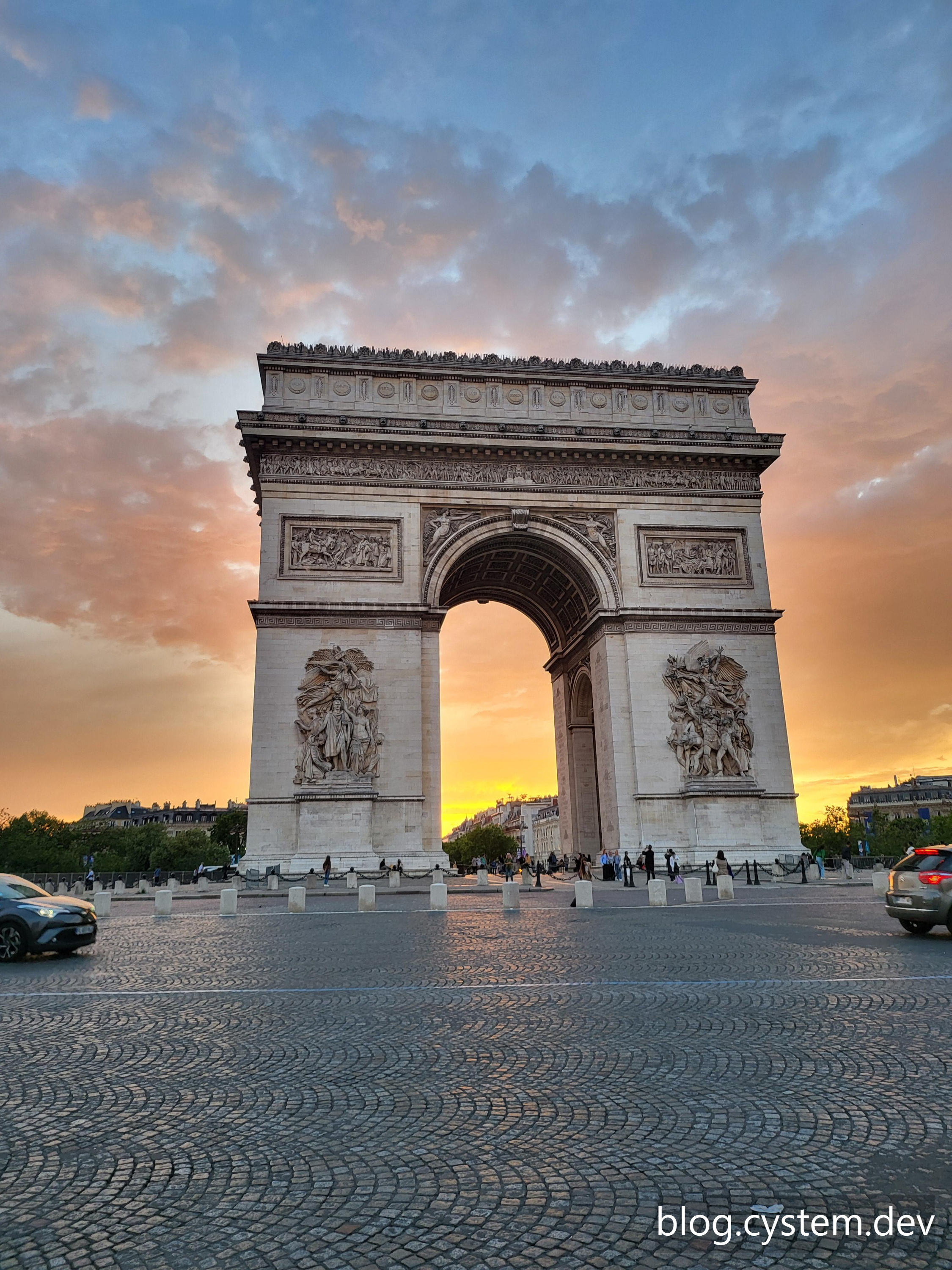 돌아가는 길에 해질녘 멋있는 개선문도 한 번 보았다.
